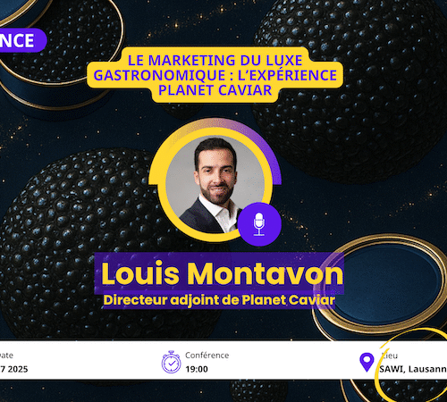 Le marketing du luxe gastronomique : l’expérience Planet Caviar Date : 27 novembre 2025 dès 18h – conférence à 19h Lieu (NOUVEAU) : dans les locaux du SAWI, Av. de la Rasude 2, 1006 Lausanne Intervenant : Louis Montavon, Directeur adjoint de Planet Caviar...