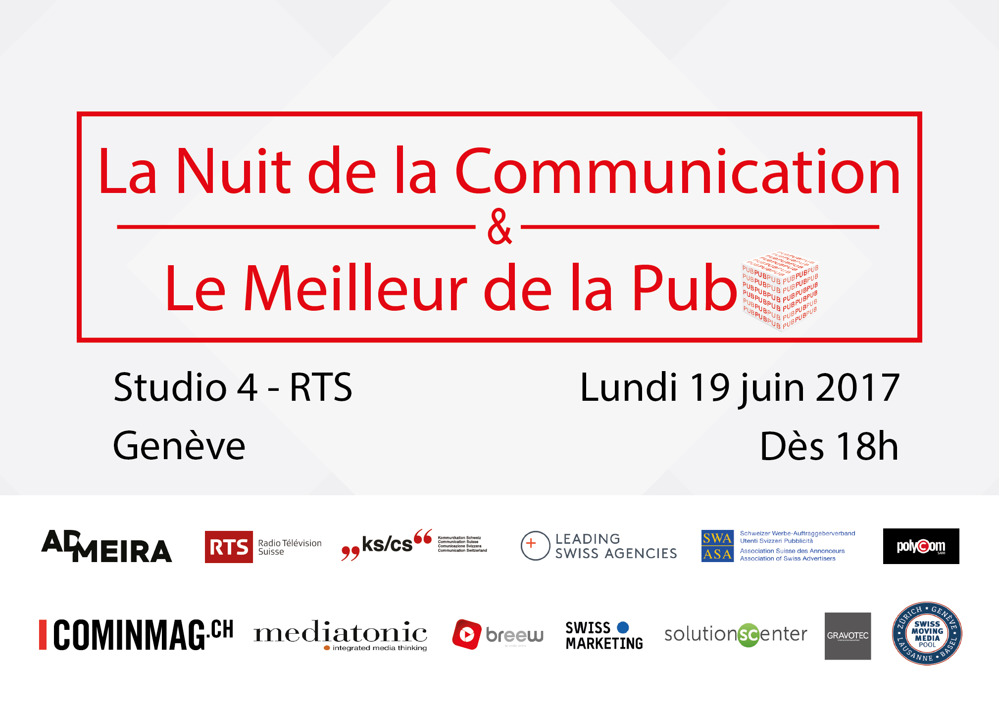 La Nuit de la Communication se tiendra le 19 juin 2017 au Studio 4 de la RTS à Genève.